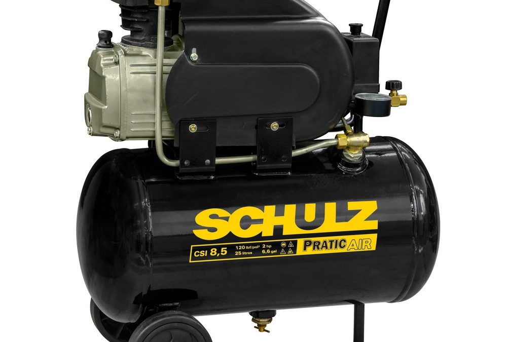 Prático e versátil, o compressor Pratic Air CSI 8,5/25 tem vazão de 8,5 pcm e pressão de 120 lbf/pol², sendo o produto ideal para uma série de aplicações, tais como serviços de pintura em geral, calibragem de pneus e inflagem de objetos. Além disso, o Pratic Air CSI 8,5/25 é leve e ergonômico, pois possui cabo de manobra e rodas que facilitam seu transporte e manuseio durante a aplicação.